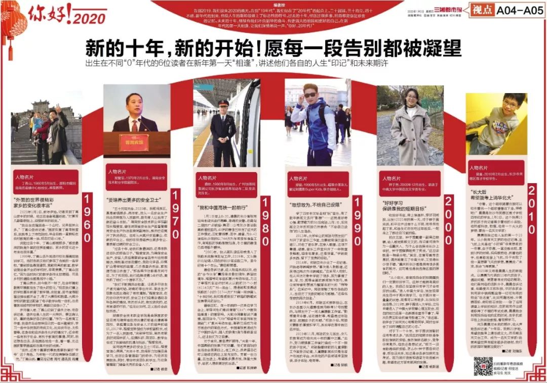 告别2019,我们迎来2020的晨光。告别“10年代”,我们站在了“20年代”的起点上。二十弱冠,三十而立,四十不惑,新年代的到来,也给人生的新阶段画上了标志性的符号。过去的十年,经历过很多事,回首都是弥足珍贵的记忆。未来的十年,继续有我们不负韶华的奋斗,有更强大的祖国和更好的自己。在新年代的第一天相逢,让我们深情地说一声:“你好,20年代!”
