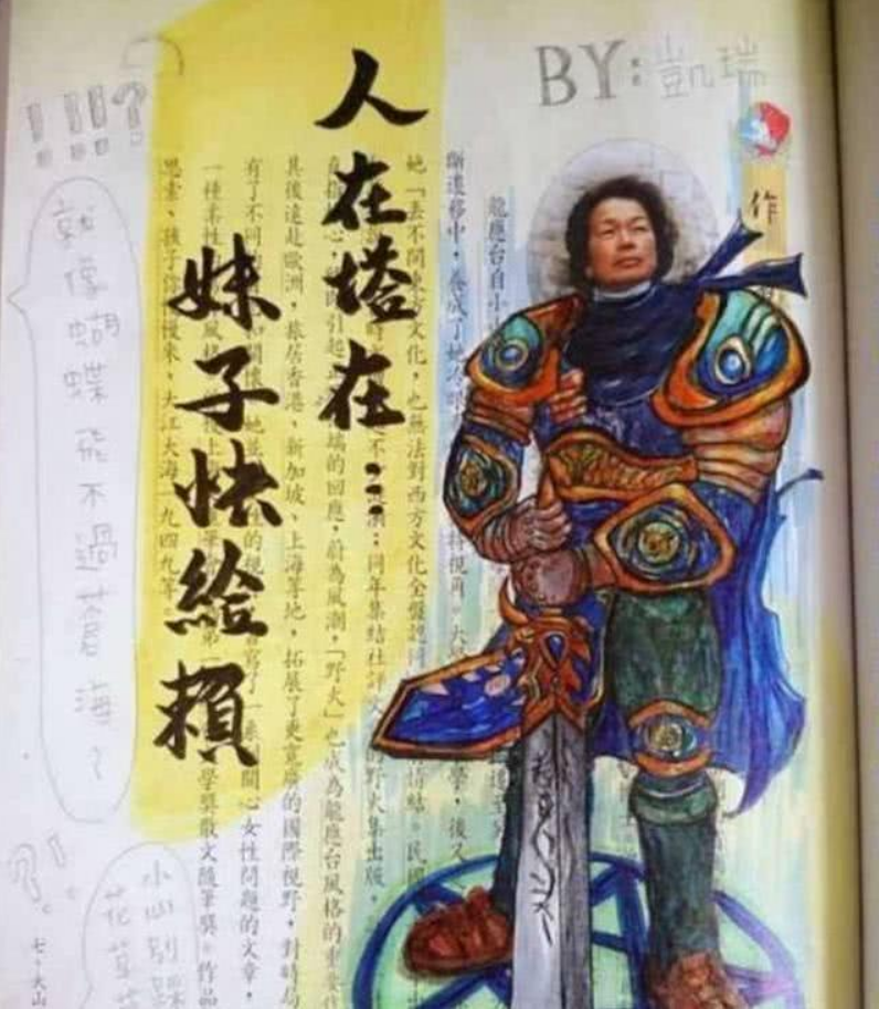 来看看这位被美术教师挑出来的优异讲义涂鸦,线条简练,用色亮堂,看上去好像是游戏明星。不能不说这一定是这个小学生十分喜爱游戏人物,描写的十分详尽,除了这个人物的头像之外,其他的当地真的是绘声绘色。但实际上细心观察之后,我才发现本来这张图是依据讲义上面的人物图片改出来了,这位同学的绘画水平可真是不错,很有灵性,想必美术教师心里乐开了花。