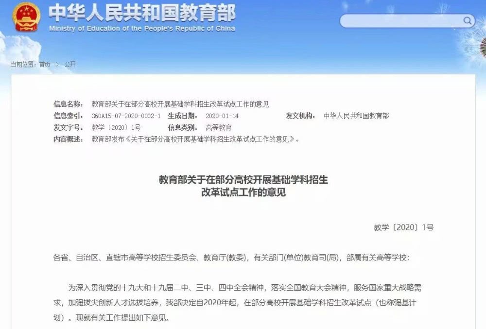 今天上午,教育部官网正式发布《教育部关于在部分高校展开基础学科招生变革试点工作的定见》。强基方案首要选拔有志于服务国家严重战略需求且归纳本质优异或基础学科优秀的学生。杰出基础学科的支撑引领效果,由有关高校结合本身办学特征,要点在数学、物理、化学、生物及前史、哲学、古文字学等相关专业招生。据了解:强基方案36所高校共招6000人,高考成果占85%,到达这个门槛后才有资历参与强基方案。总归一句话,经过考试选拔归纳本质人才或基础学科优秀的学生,服务于国家的严重战略需求。而想要参与这一方案,有必要以高考成果为条件。你高考成果都不可,天然没有资历参与强基方案。与自主招生比较,公正是有必要的。