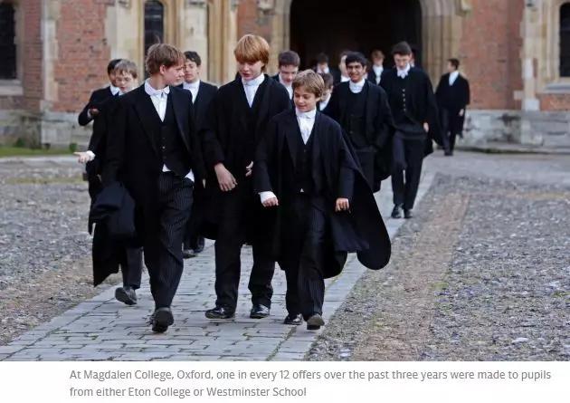 牛津大学Magdalen College,12份Offer中有一个就被两所私立校园承揽。详细来说,在曩昔三年里,学院发的300个本科名额中,有25个就发给了伊顿公学和威斯敏斯特公学的学生。