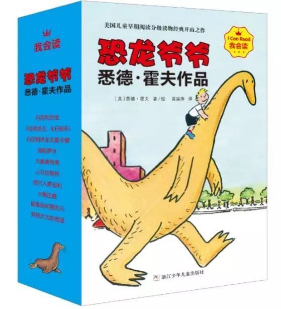 这本书和悉德 霍夫的其他代表作共10册集结成套,修改成《我会读 恐龙爷爷悉德 霍夫著作》,整套书均以儿童视角为基准,故事情节温馨诙谐,图像线条简略直白,用词简略,文字量也少,很合适孩子们从图像书过渡到纯文字阅览,也是孩子们自主阅览的不贰挑选。