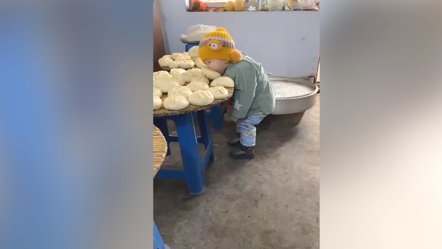 宝爸宝妈做好了一大盘的包子,把包子放在了厨房,宝宝走了进来,看到了这个多的包子,这包子看起来又大又好吃,宝宝一个没忍住,就把脸凑曩昔,啃了一口。