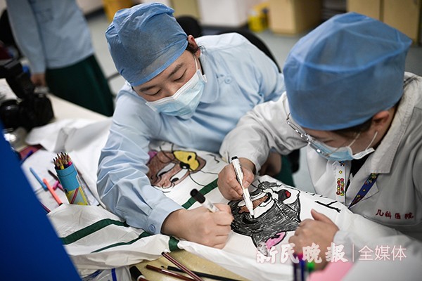 护理站就在兄妹俩的病房外,专科护理王佳丽此时正在阻隔服上尽力画着“猫和老鼠”。她说,这些天,科室小伙伴都奉献过“著作”了,今日轮到她创造。“病房就那么点大,玩的把戏少。每天看到咱们身上的卡通画,便是孩子最等候的事。”
