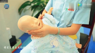 2、右手在宝宝的两个肩胛中点处,用掌根用力向下向内叩击5次。5次为一个循环,假如异物没有排出要重复这个动作。