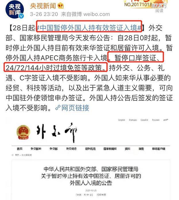现在咱们国内的状况在一天天好转,许多区域现已接连多日都是零添加,可是国外状况却开端加剧,比方意大利、英国等国家,现在也都遭受重创。为避免境外输入,我国外交部昨夜发布了“制止入境”的告诉,暂停外国人持有用签证入境。