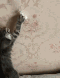 猫咪看到铲屎官挂在墙上的耳机,玩得挺快乐的。