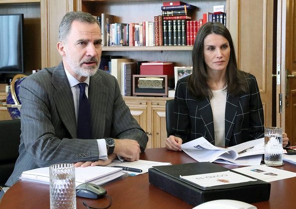 当地时间4月20日,西班牙国王费利佩六世和王后莱蒂齐亚,按例在他们的居所“萨苏埃拉宫”(Palacio de la Zarzuela)参与长途会议,这也是新冠病毒疫情期间,配偶二人最常见的出面方法。尽管国王配偶现在不必外出,但每天的日程却也排得很满,会议也是一个接着一个。